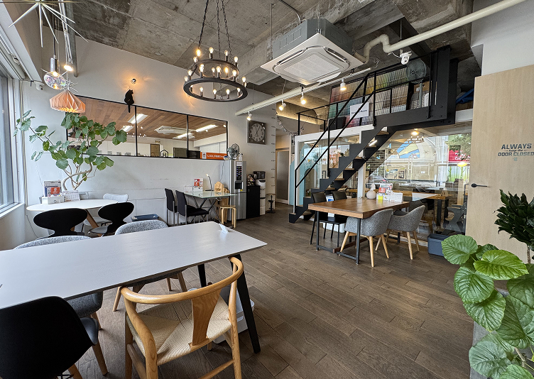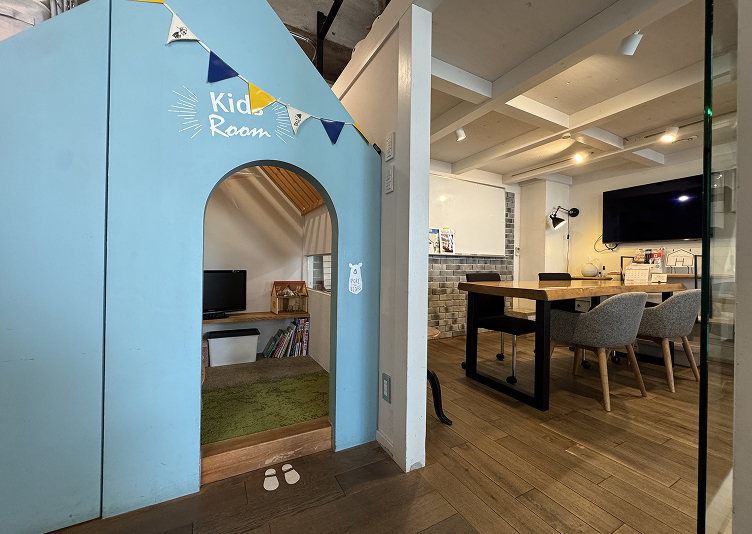 店舗前駐車場のほか、向かいにあるラピオにも駐車いただけます。キッズスペースもあるアットホームな店舗です。