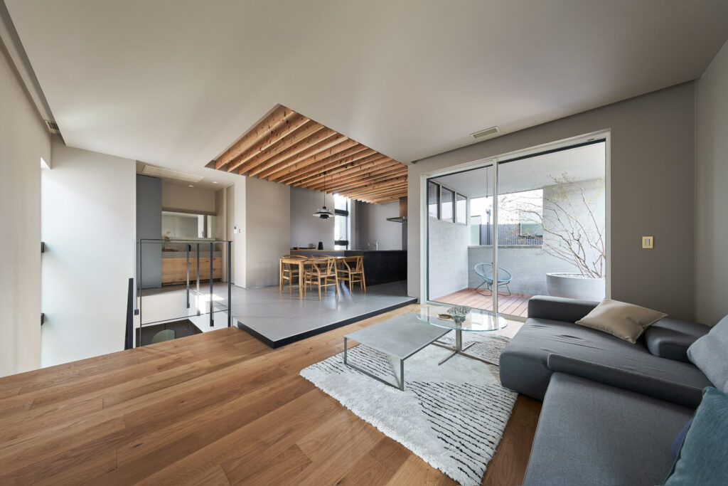 大開口・大空間を可能にするSE構法により、木造住宅とは思えないスケール感と自由な設計を実現。空間を遮らない構造が、ダイナミックな吹き抜けや自然光あふれる広がりを生み出します。