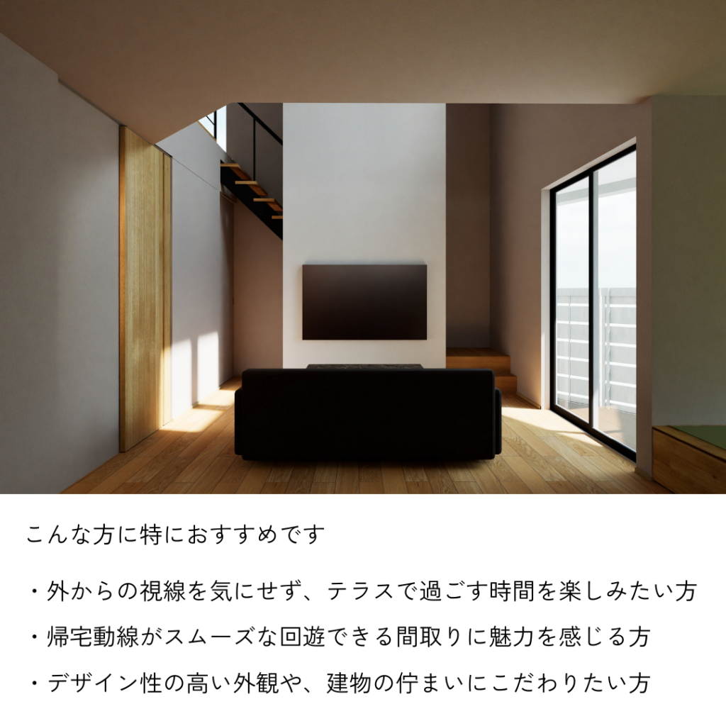 内外をつなぐテラスと神・回遊動線の家